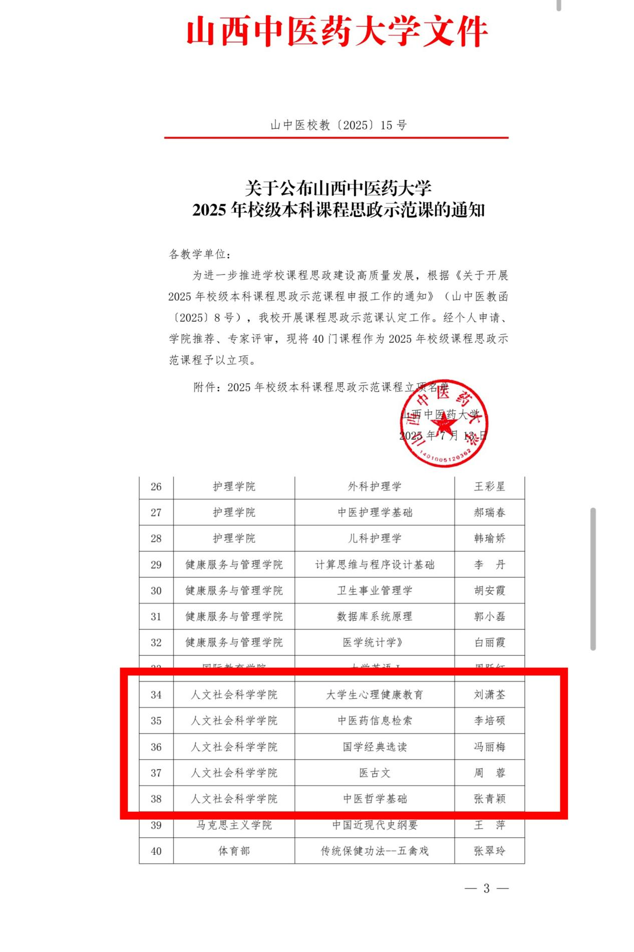 此次立项的五门课程为《大学生心理健康教育》《中医药信息检索》《国学经典选读》《医古文》和《中医哲学基础》。各门课程注重将思想政治教育与专业知识传授深度融合,引导学生树立正确的世界观、人生观和价值观,增强文化自信与专业使命感,实现了知识传授、能力培养与价值引领的有机统一。